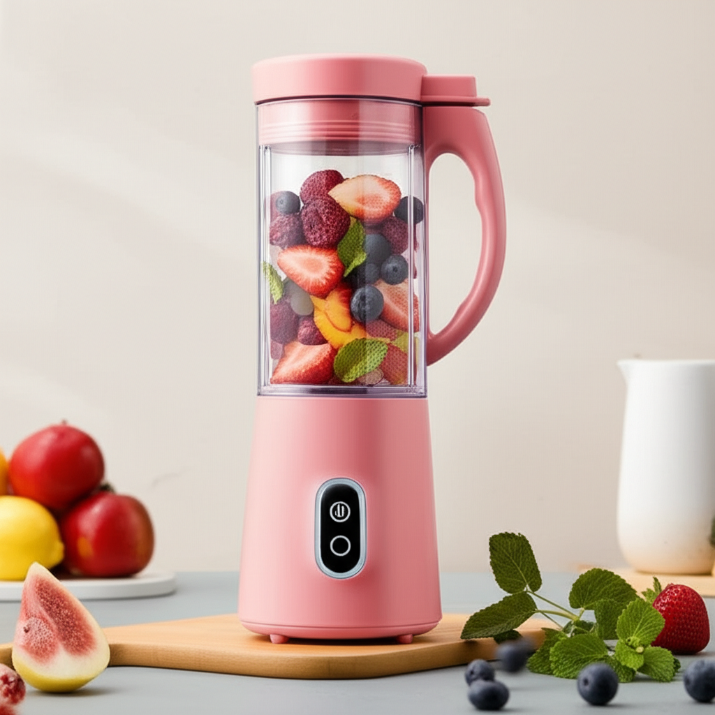 Ini adalah blender mini ringkas yang ditenagai oleh baterai isi ulang, umumnya melalui USB-C. Dirancang khusus agar mudah dibawa dan digunakan di mana saja, tanpa perlu terhubung ke listrik.