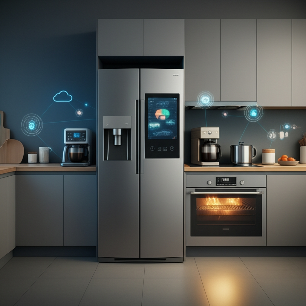 IoT memungkinkan peralatan dapur seperti oven, kulkas, mesin kopi, hingga timbangan, untuk terhubung satu sama lain dan dengan internet. Mereka dapat berkomunikasi, bertukar data, dan dikendalikan dari jarak jauh melalui aplikasi di smartphone atau perintah suara.
