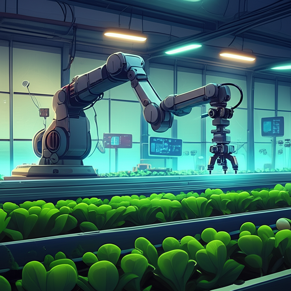 - Robot Pemanen Cerdas: Dilengkapi sensor dan kecerdasan buatan, robot ini dapat mengidentifikasi dan memanen buah atau sayuran matang dengan lembut, mengurangi kerusakan dan kerugian.